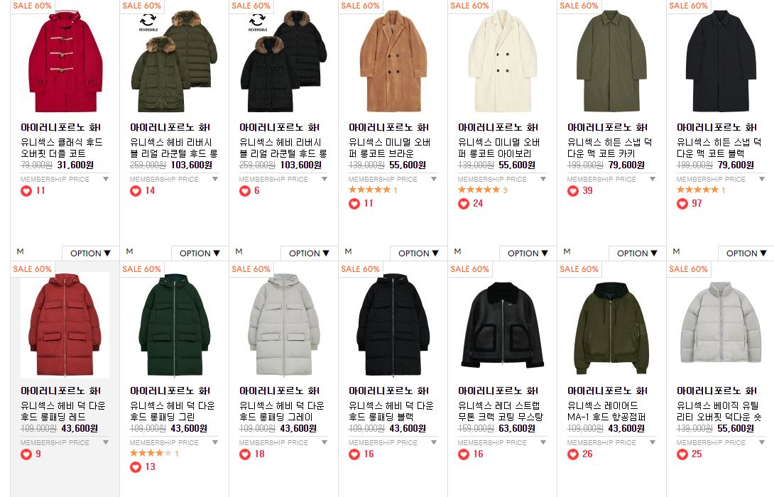 할인 품목 : 점퍼, 코트, 니트 등