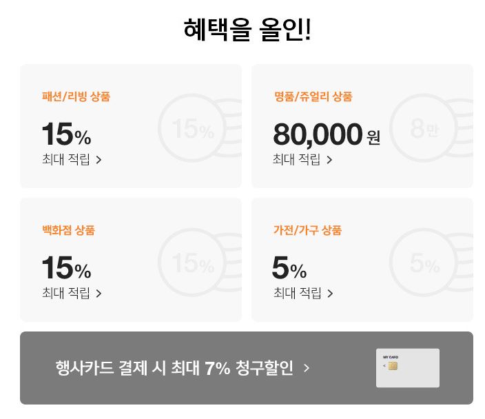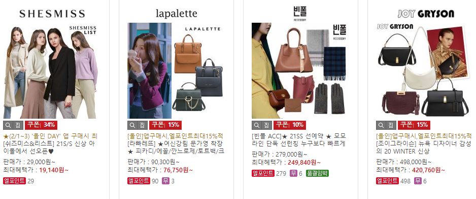 할인 품목 : 의류, 가방, 가전, 가구 등