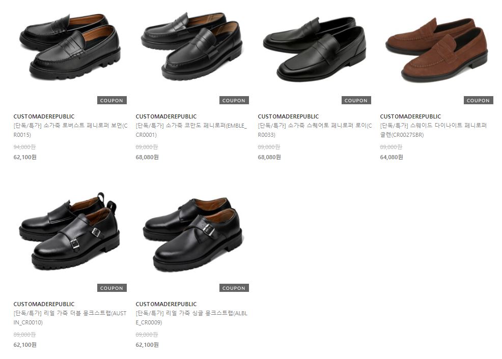 CUSTOMADE REPUBLIC 다양한 제품을 할인 판매하네요.