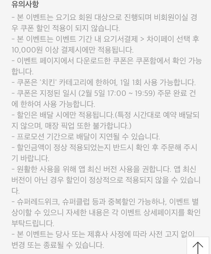 요기요 치킨 차이페이 결제 시 4000원 할인 이벤트를 진행하네요.