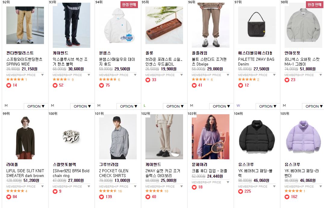 할인 품목 : 의류, 신발, 악세사리 등