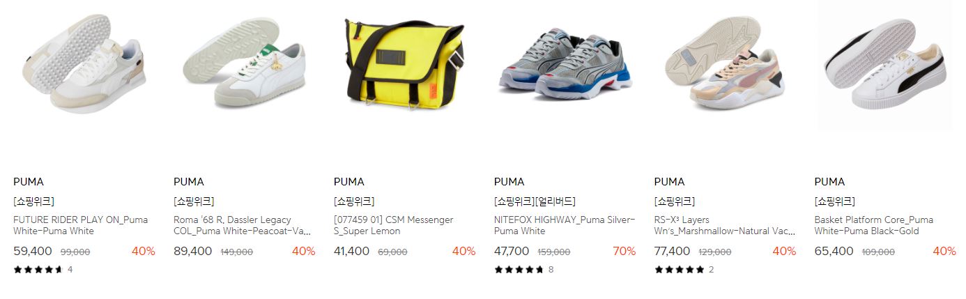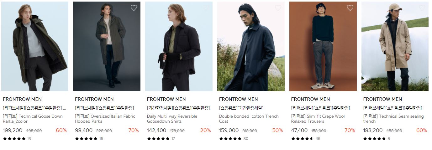할인 품목 : 티셔츠, 운동화, 코트, 가방 등