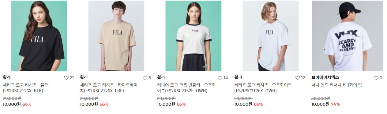 할인 품목 : 티셔츠, 모자, 백팩 등