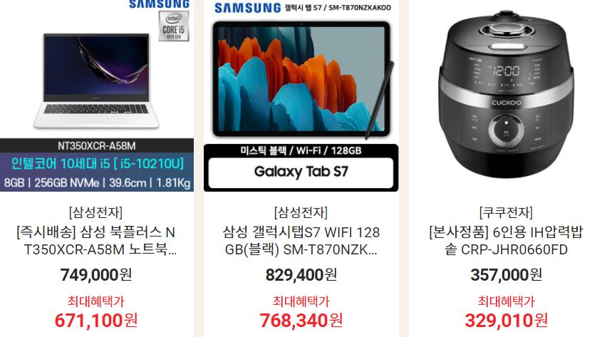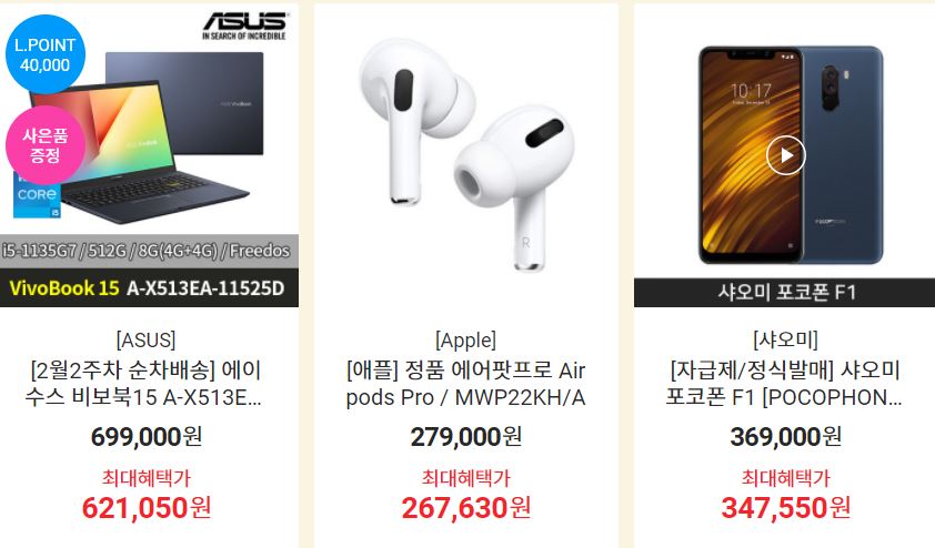 할인 품목 : 노트북, 휴대폰, 모니터 등
