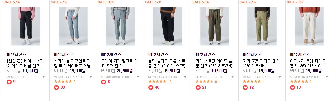 에잇세컨즈 다양한 제품을 할인 판매하네요.