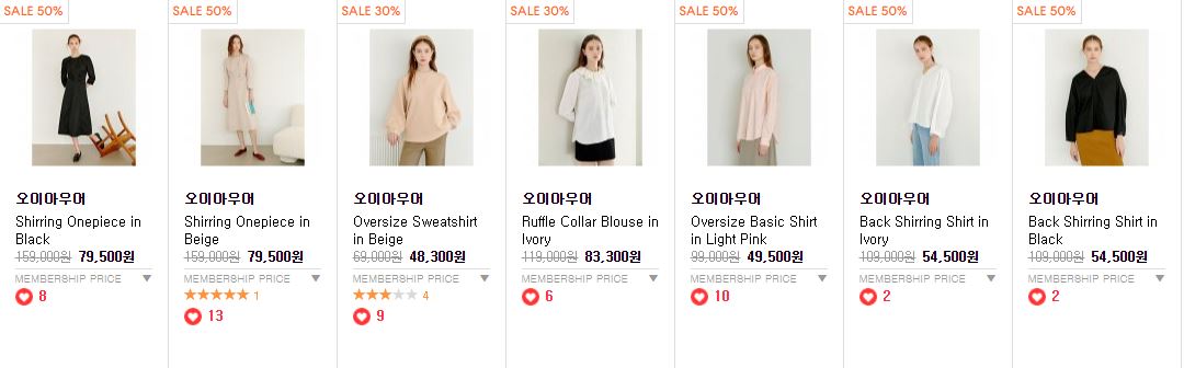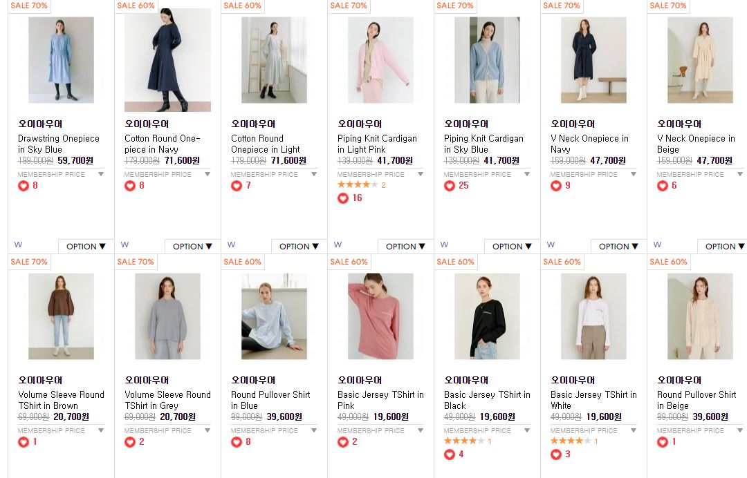 할인 품목 : 원피스, 티셔츠, 가디건 등