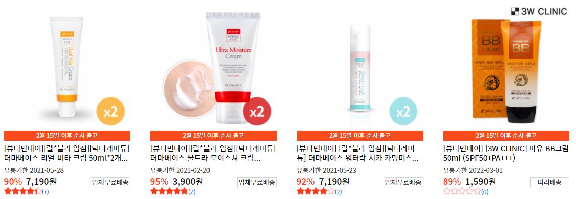 할인 품목 : 비비크림, 립밤, 수분크림 등