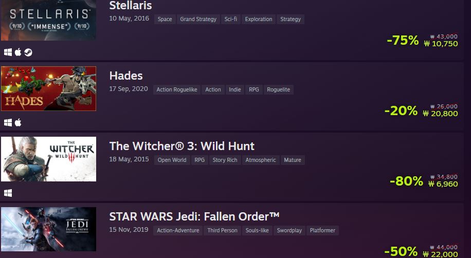스팀 사이트에서 할인 이벤트를 진행하네요.
