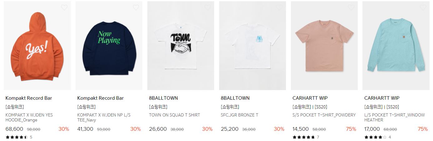 할인 품목 : 운동화, 티셔츠, 코트 등