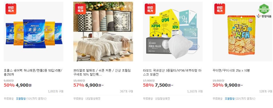 할인 품목 : 마스크, 식품, 가전 등