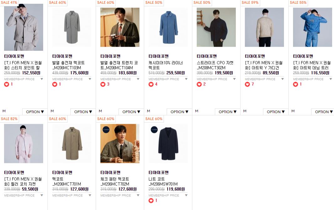 할인 품목 : 자켓, 코트, 티셔츠 등