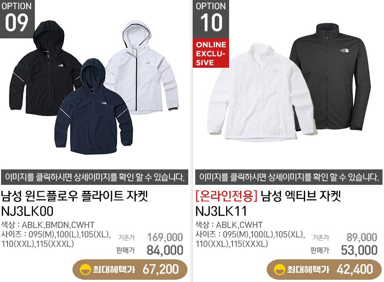 할인 품목 : 자켓, 티셔츠, 팬츠 등
