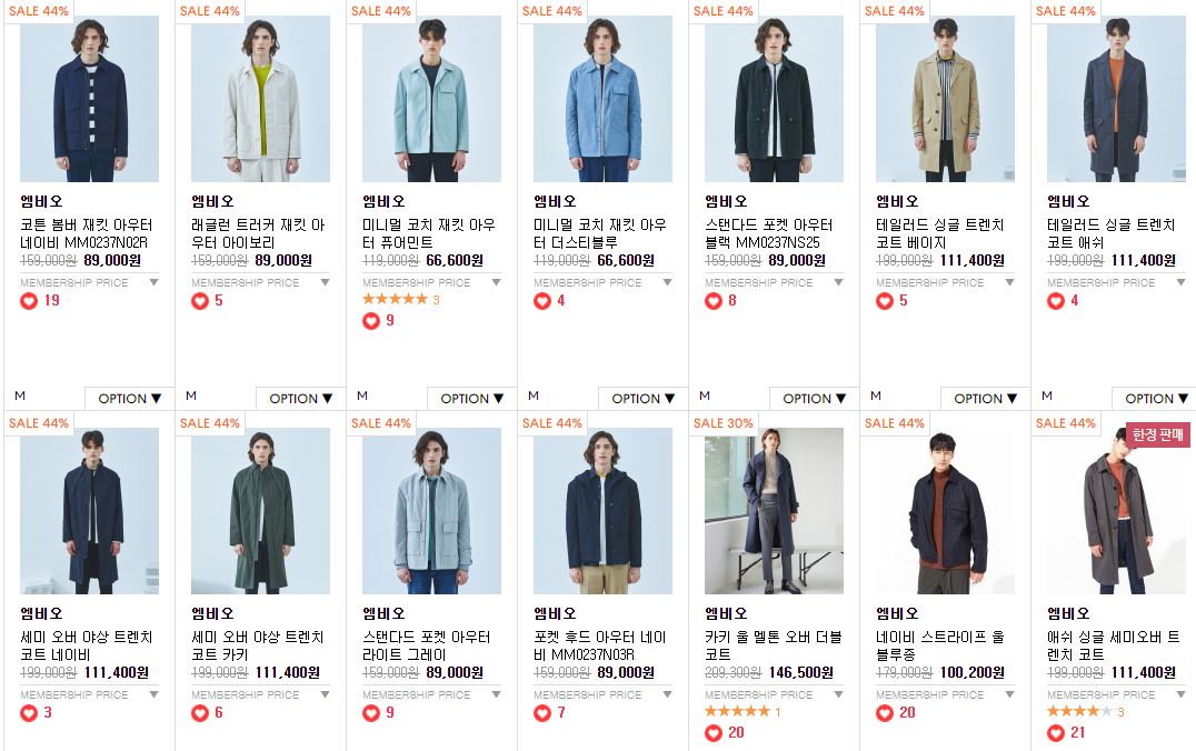 할인 품목 : 자켓, 스웨터, 팬츠 등
