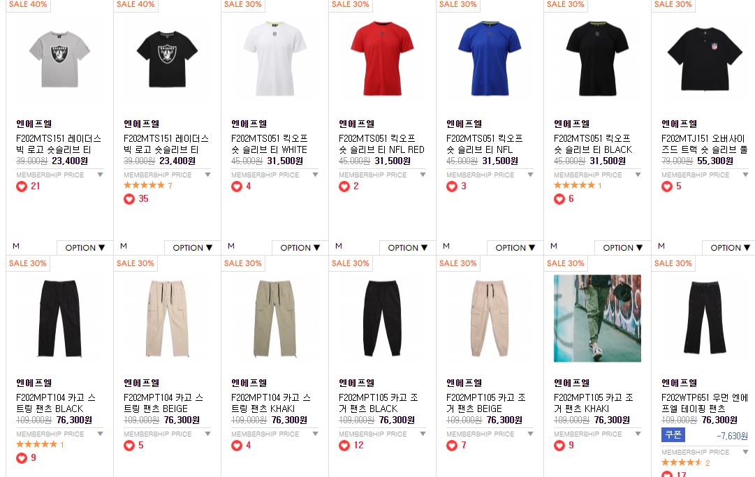 할인 품목 : 맨투맨, 후드티, 팬츠 등