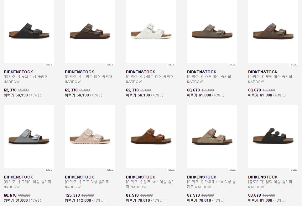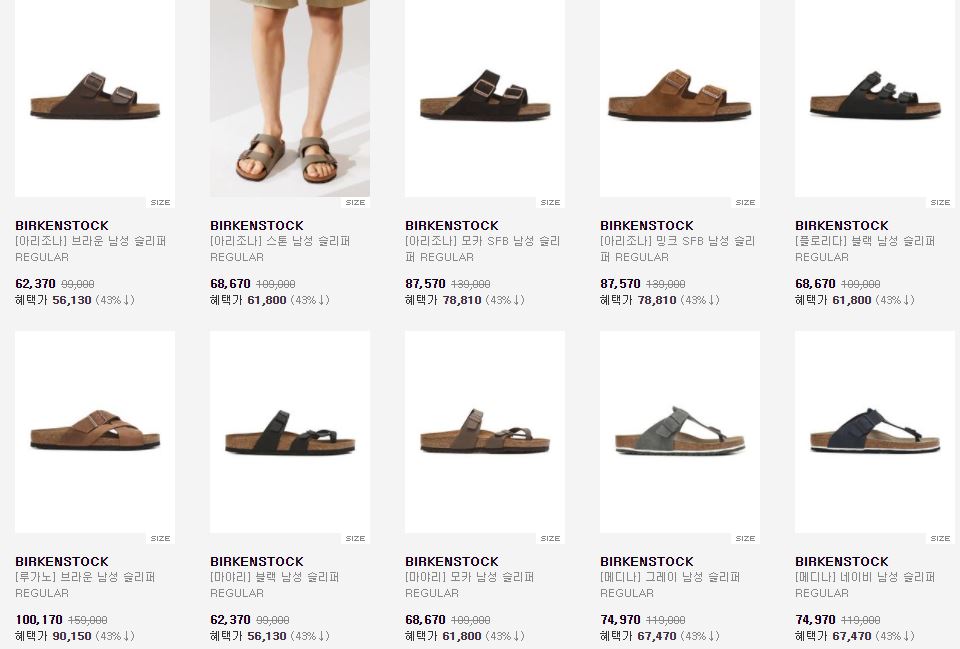 버켄스탁 다양한 제품을 할인 판매하네요.