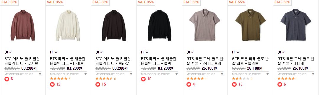 할인 품목 : 티셔츠, 셔츠, 팬츠 등
