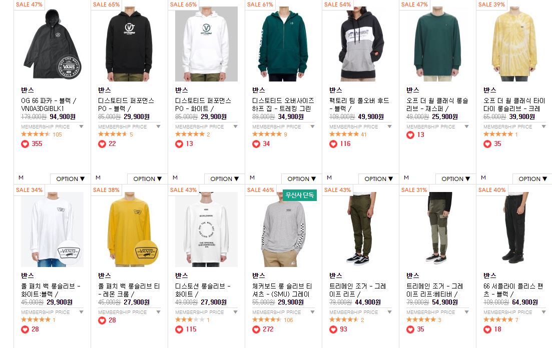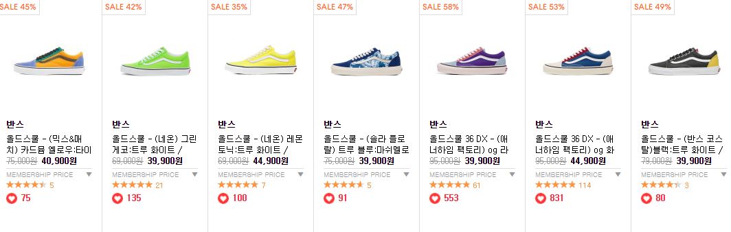 반스 다양한 제품을 할인 판매하네요.