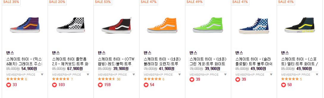 반스 다양한 제품을 할인 판매하네요.