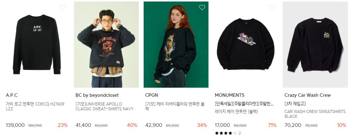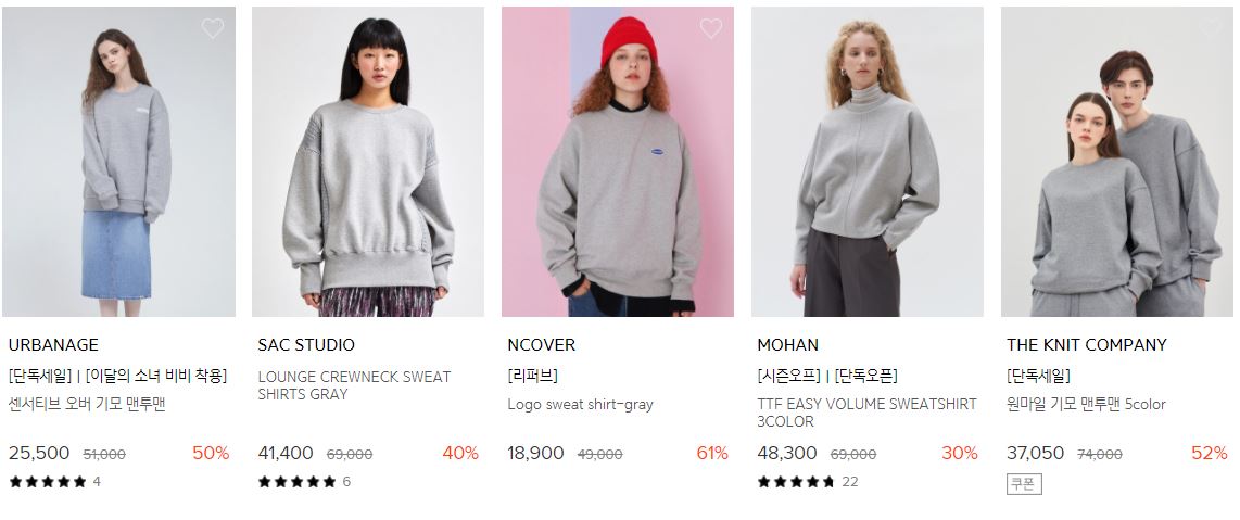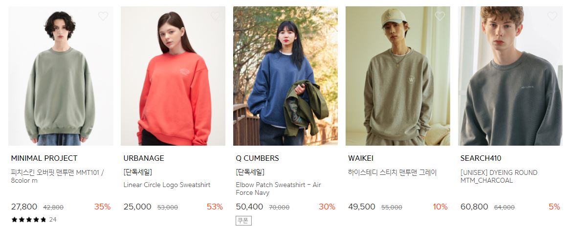 W컨셉 스웻셔츠 최대 86% 세일 정보 [링크]