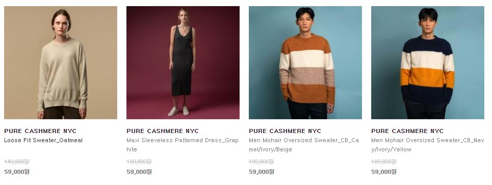 퓨어캐시미어 파이널 클리언스 최대 80% 세일 정보 [링크]
