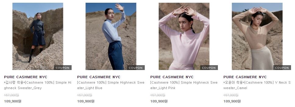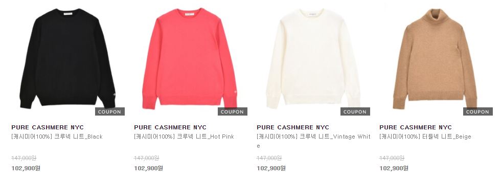 퓨어캐시미어 다양한 제품을 할인 판매하네요.