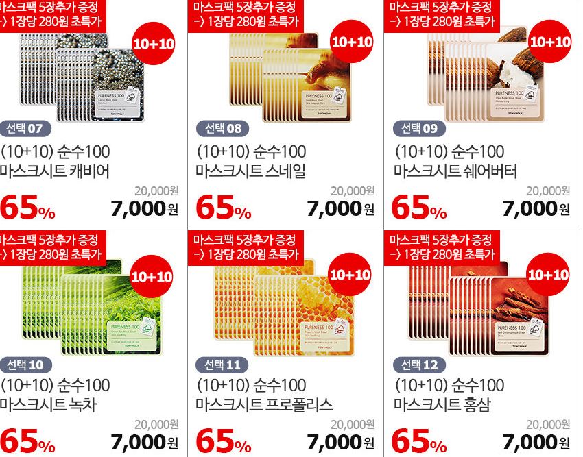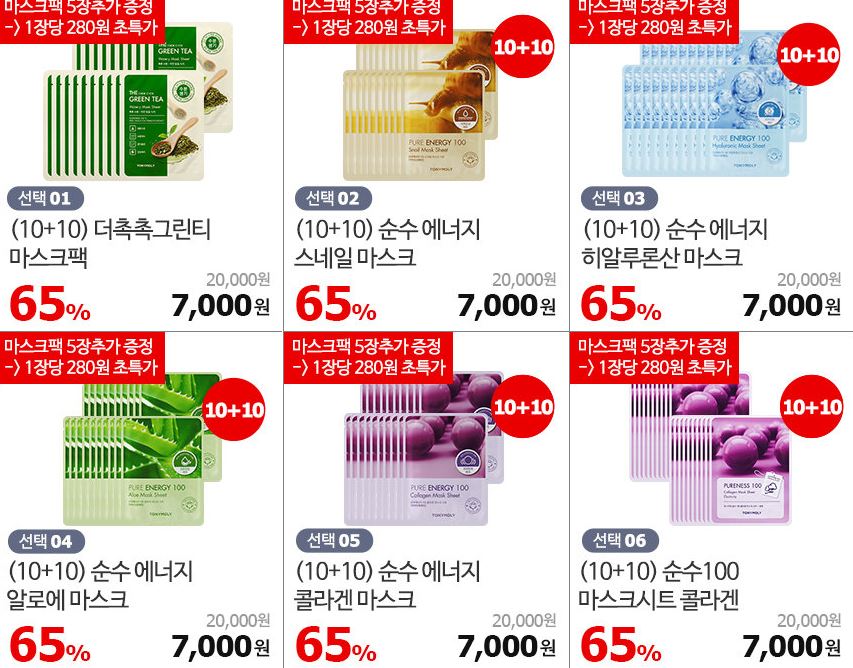 할인 품목 : 마스크팩, 클렌징폼, 수분크림 등