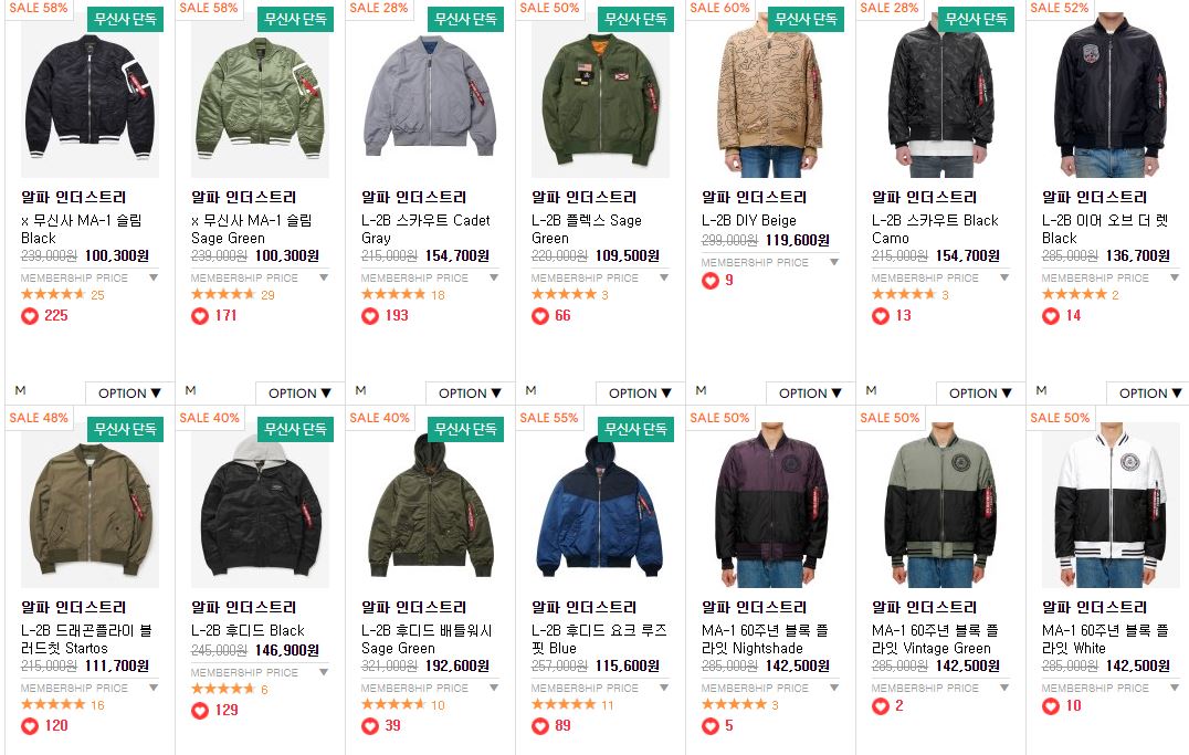 알파 인더스트리 다양한 제품을 할인 판매하네요.