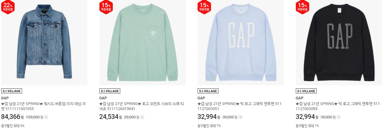 갭 다양한 제품을 할인 판매하네요.