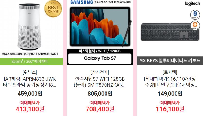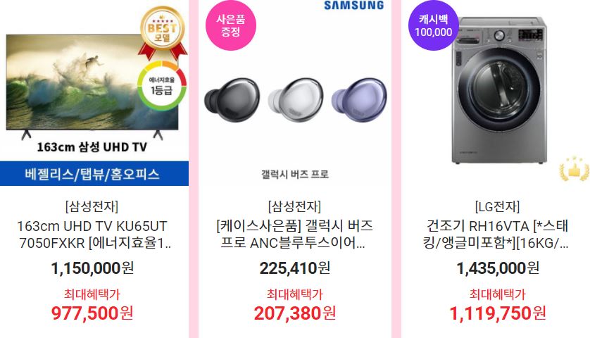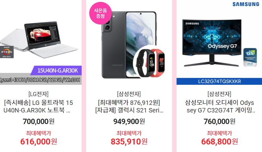 할인 품목 : 휴대폰, 모니터, TV 등