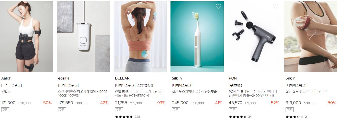 할인 품목 : 마사지건, 가습기, 마스크 등