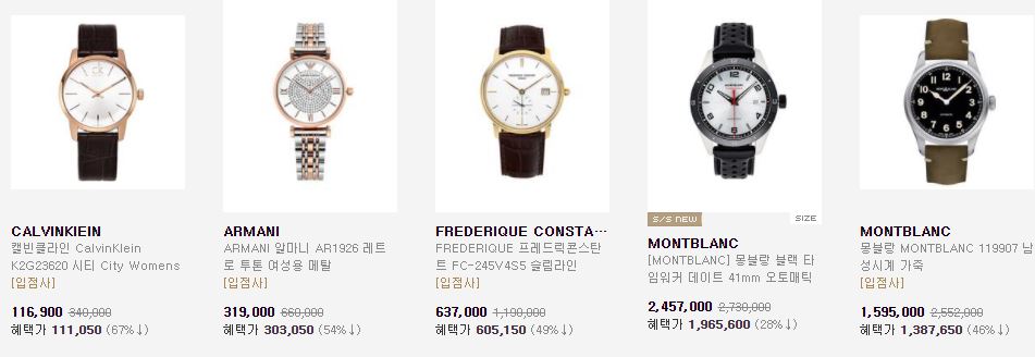 할인 품목 : 운동화, 시계, 가방, 의류 등