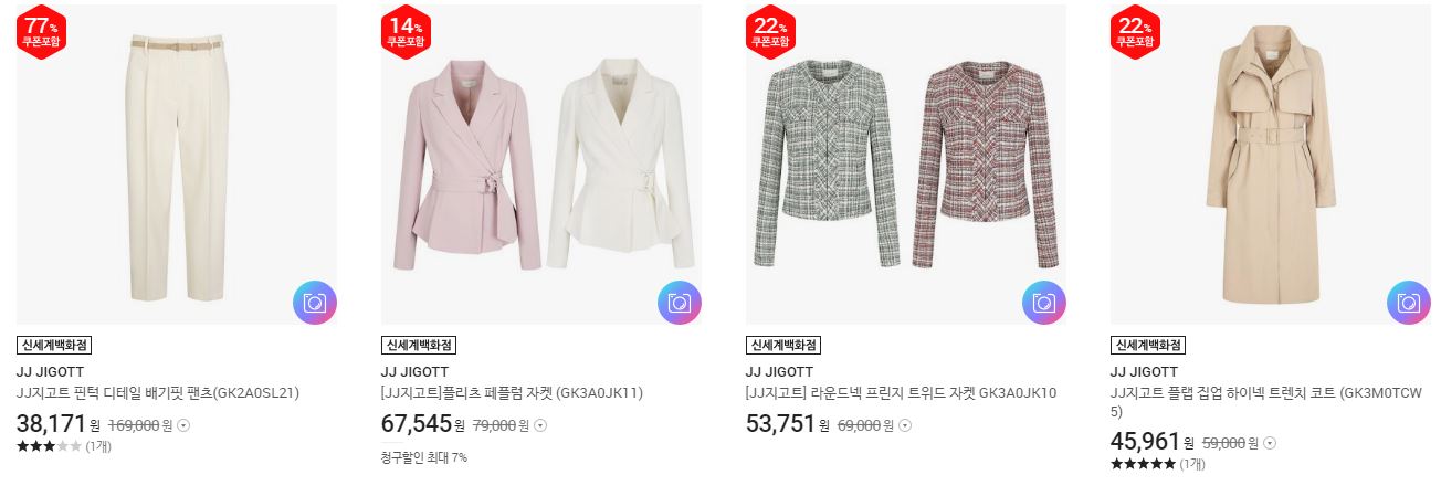 JJ지고트 다양한 제품을 할인 판매하네요.