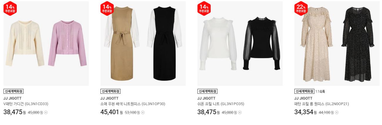 할인 품목 : 코트, 원피스, 니트, 가디건 등