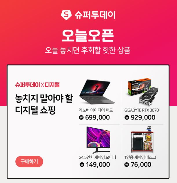 할인 품목 : 노트북, 모니터, 생필품 등