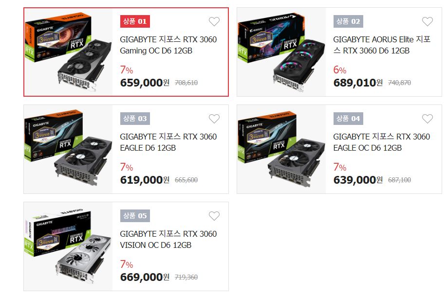 GIGABYTE 지포스 RTX 3060 할인 정보 [링크]