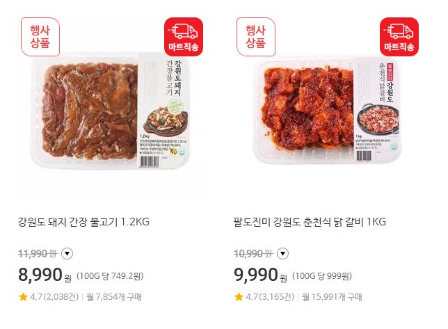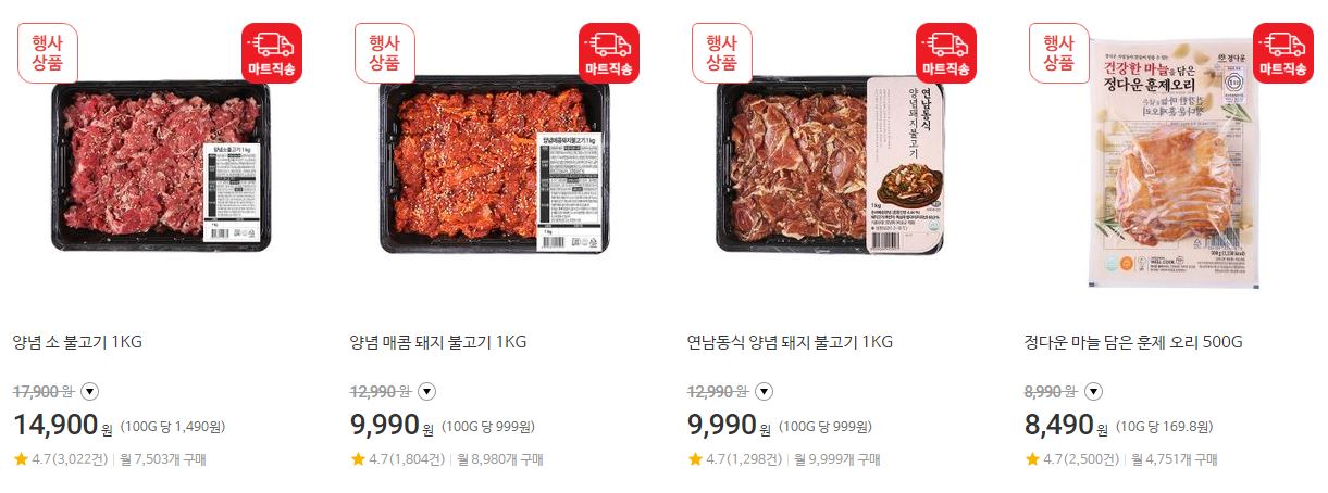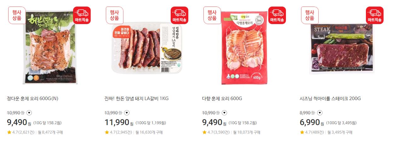 할인 품목 : 닭갈비, 스테이크, 돼지불고기 등