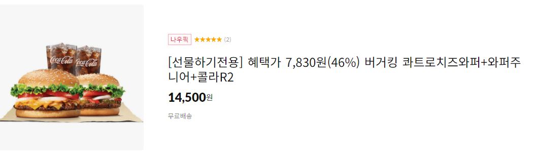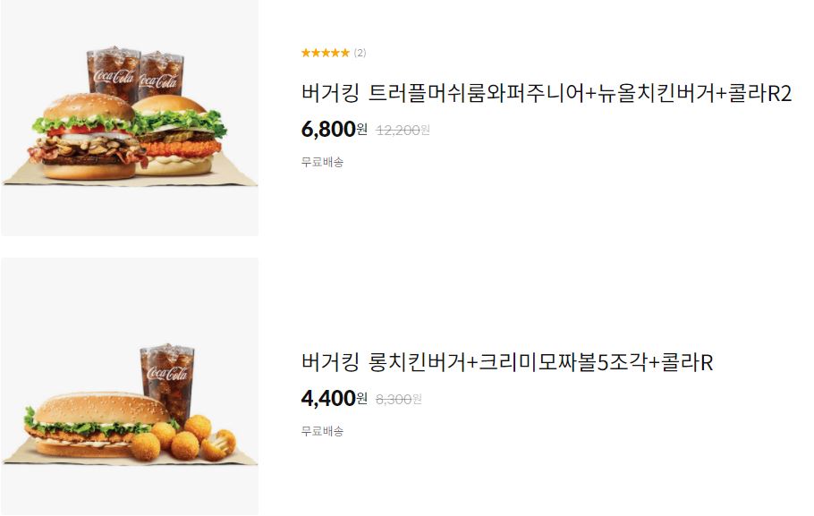 할인 메뉴 : 트러플머쉬룸와퍼주니어+뉴올치킨버거+콜라2 등