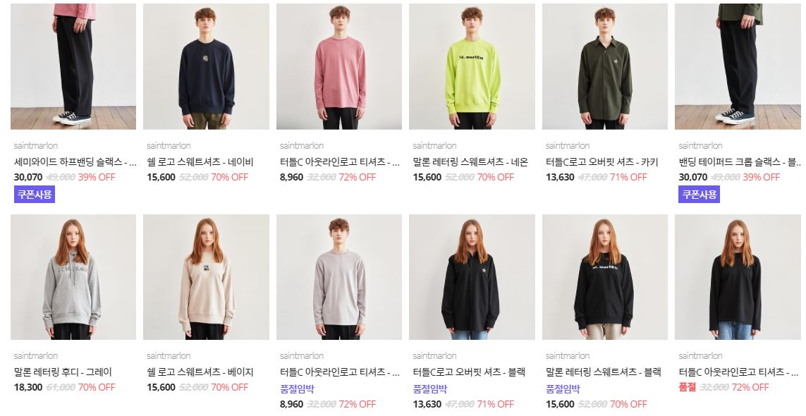 세인트말론 다양한 제품을 할인 판매하네요.
