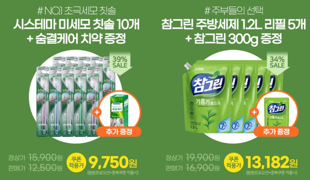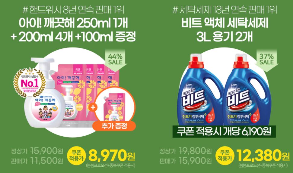 할인 품목 : 세제, 칫솔, 손소독제 등