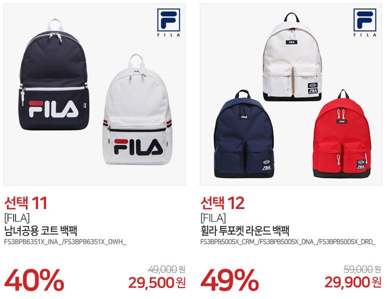 휠라 다양한 제품을 할인 판매하네요.