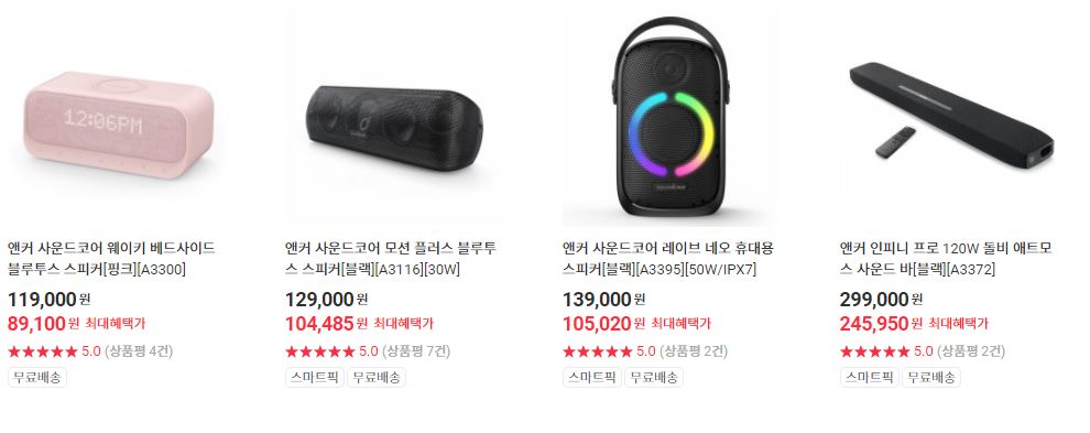할인 품목 : 스피커, 이어폰, 화장품 등