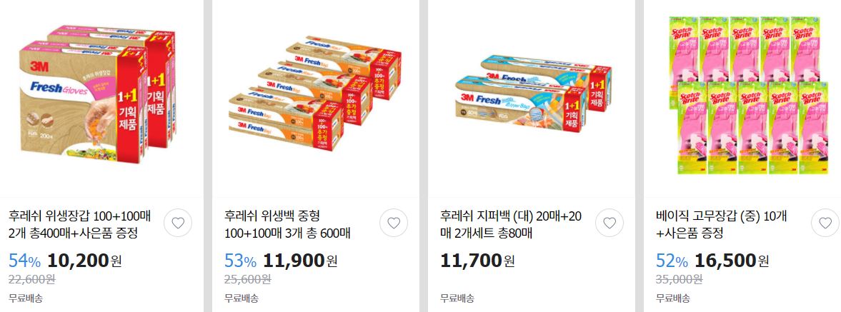 할인 품목 : 위생장갑, 고무장갑, 청소포 등