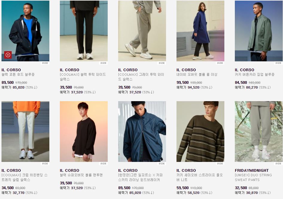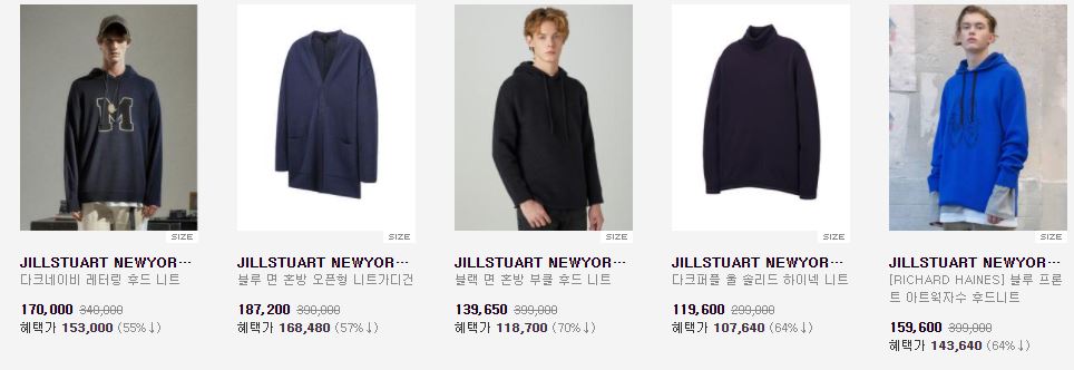할인 품목 : 자켓, 니트, 팬츠, 티셔츠 등