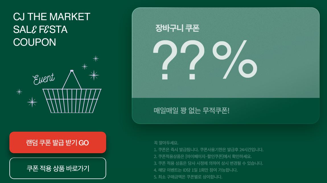 CJ더마켓 사이트에서 할인 이벤트를 진행하네요.