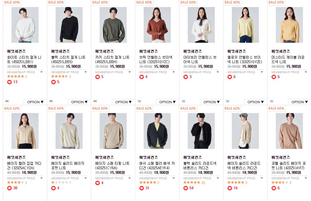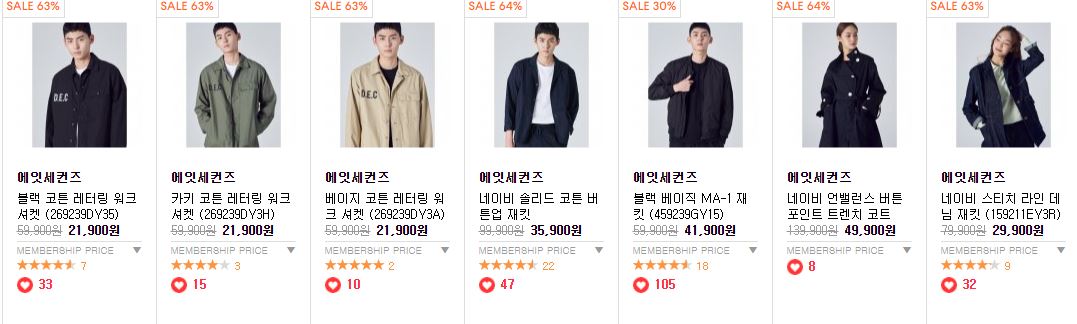에잇세컨즈 다양한 제품을 할인 판매하네요.