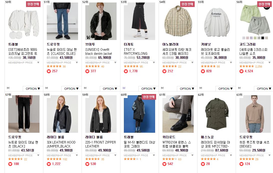 할인 품목 : 셔츠, 자켓, 티셔츠, 신발 등