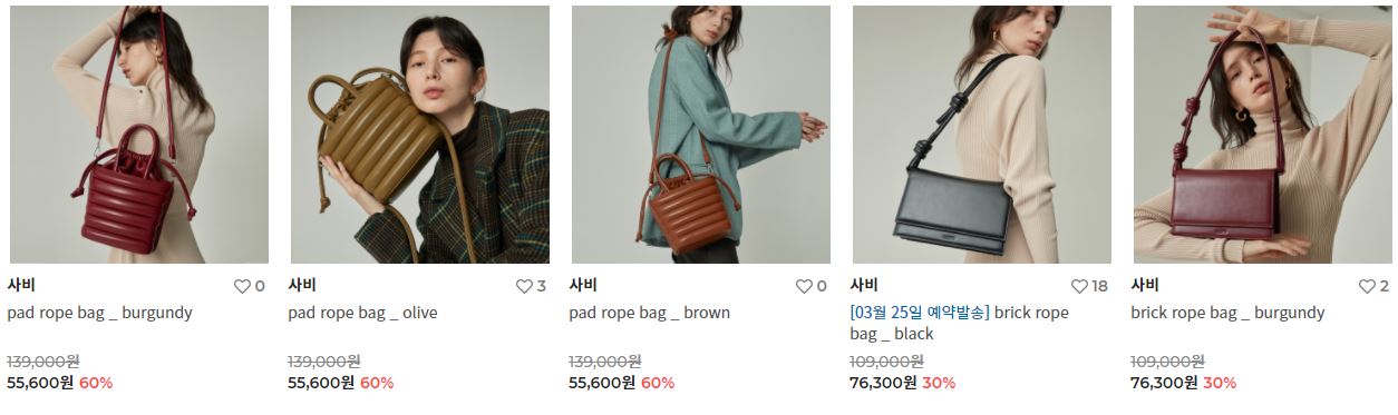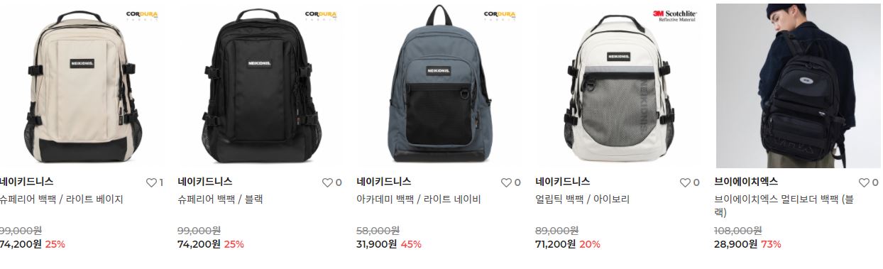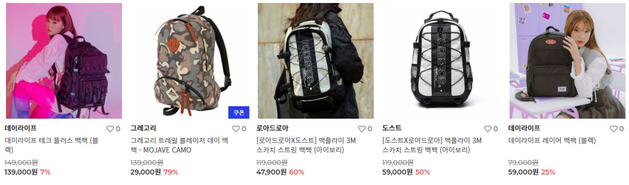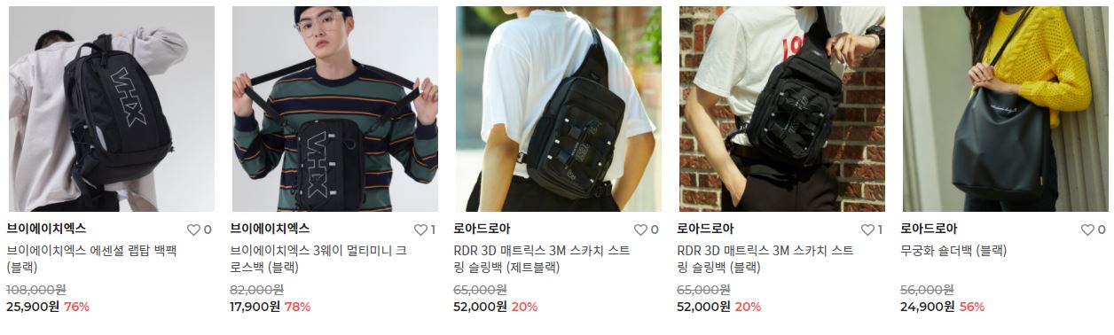 할인 품목 : 백팩, 크로스백, 운동화 등