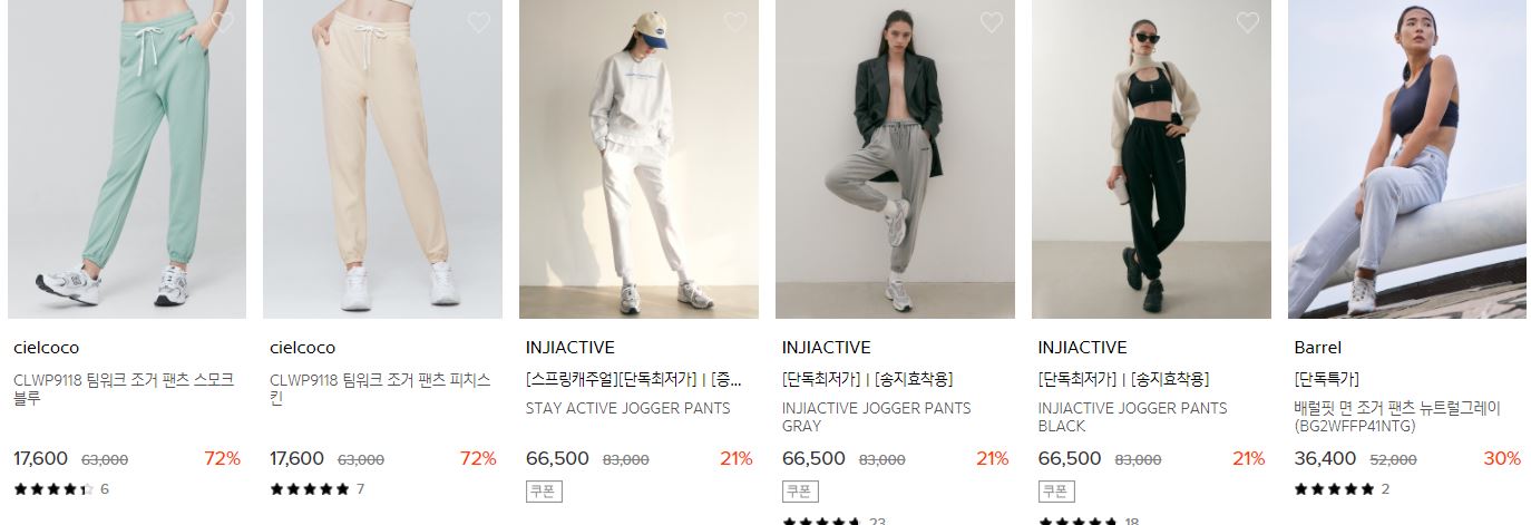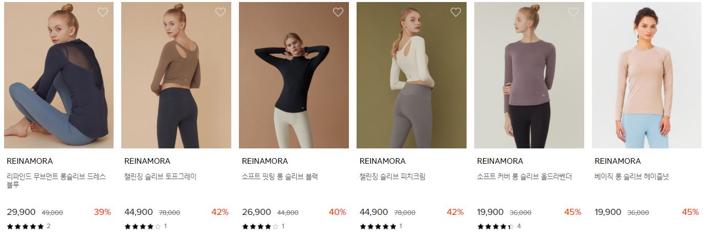 할인 품목 : 레깅스, 티셔츠, 팬츠 등
