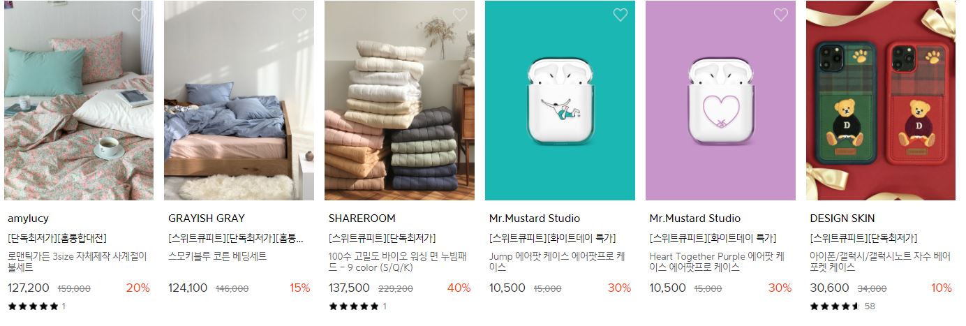 할인 품목 : 귀걸이, 화장품, 구두 등