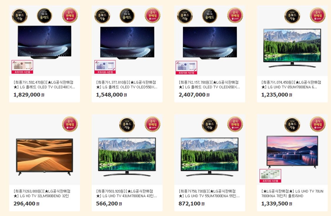 할인 품목 : OLED, 나노셀 등